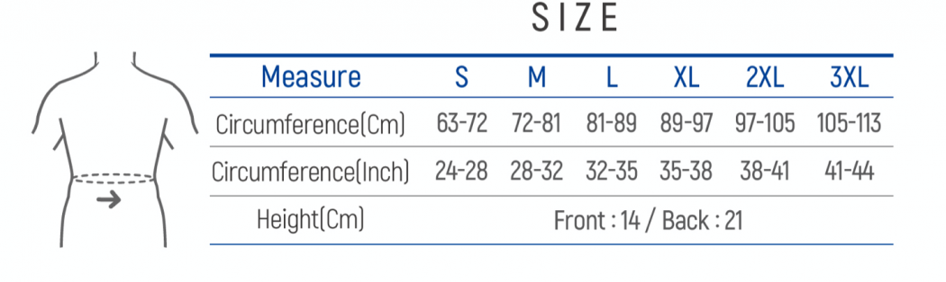 – Allowing posterior reinforcements on lumbar-sacral region & increasing intra-abdominal pressure with 4 spiral shaped stays.